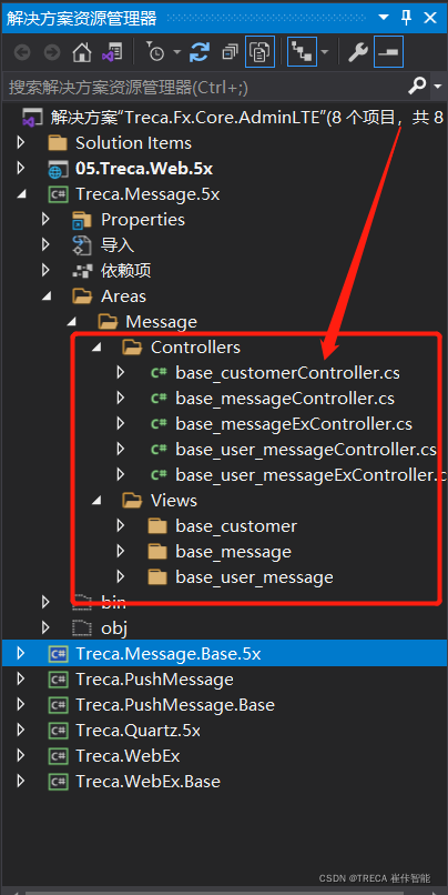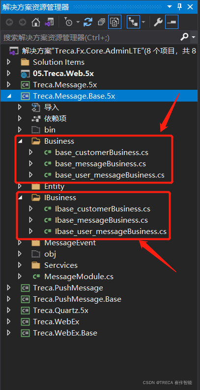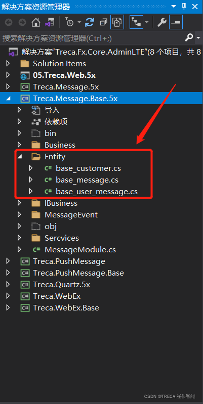 这里示例填写ProjectManage,点击生成按钮,即可完成代码生成。生成后的代码在项目解决方案中,将代码文件包括进入项目