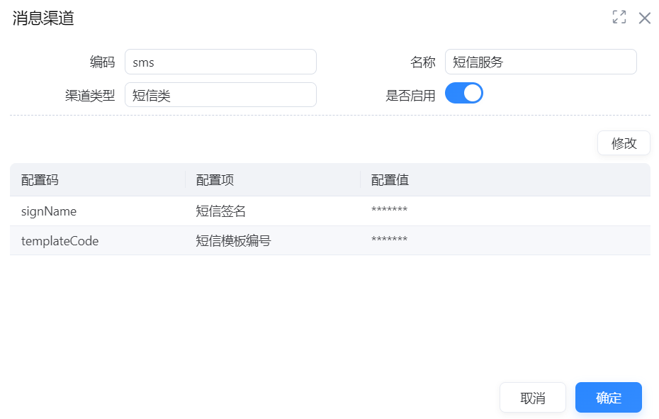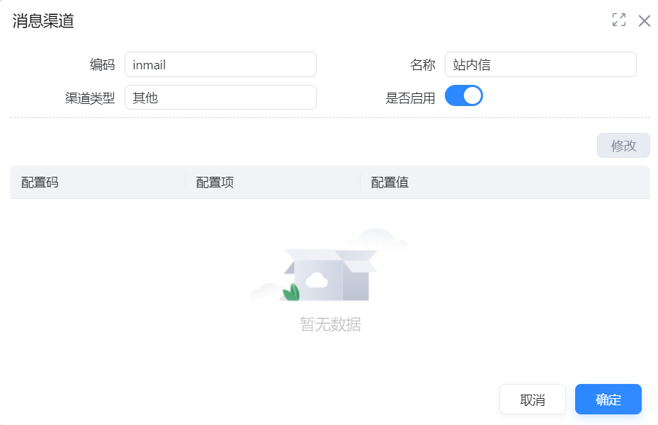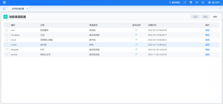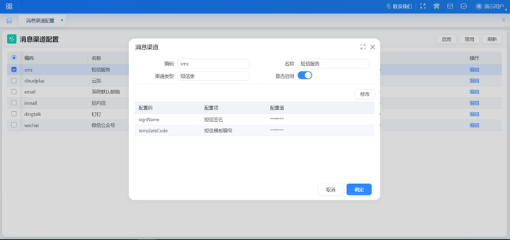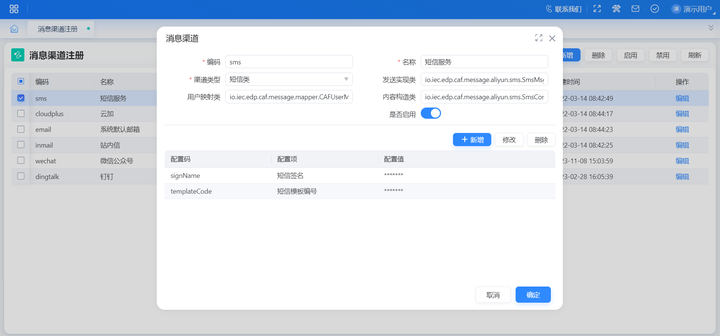 功能入口:【系统公共】-【消息中心】-【消息平台】-【消息渠道配置】