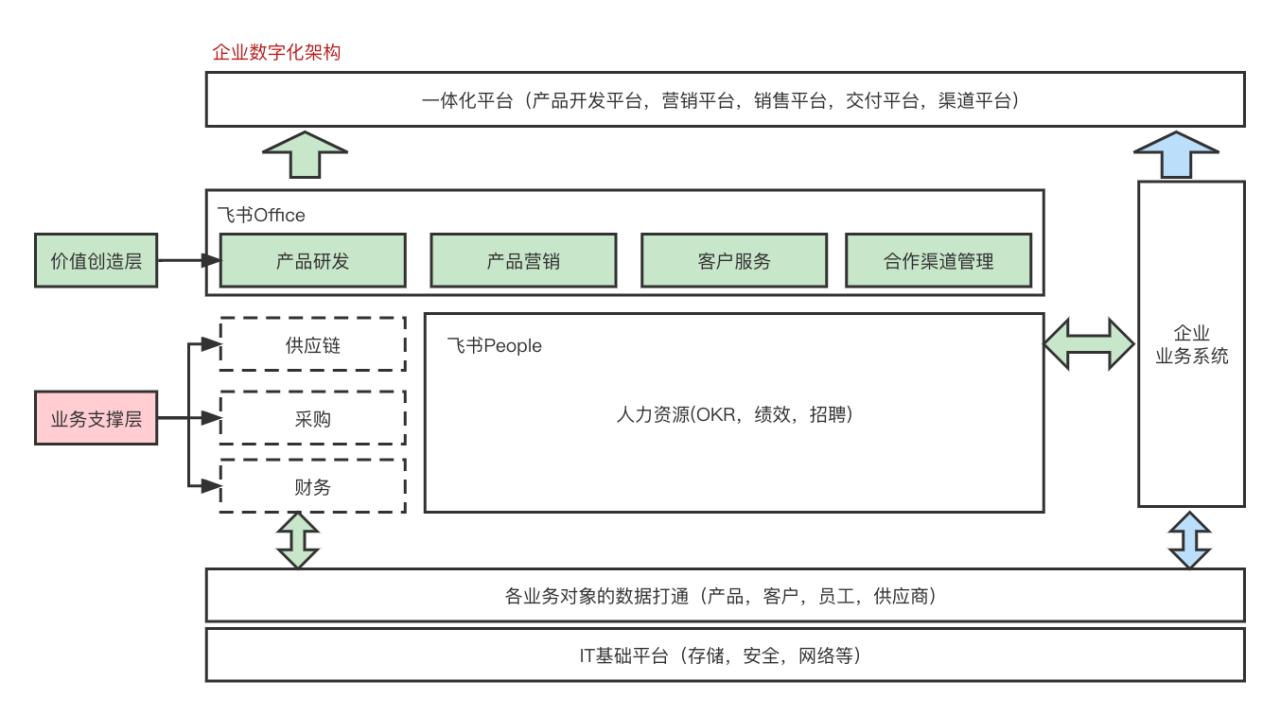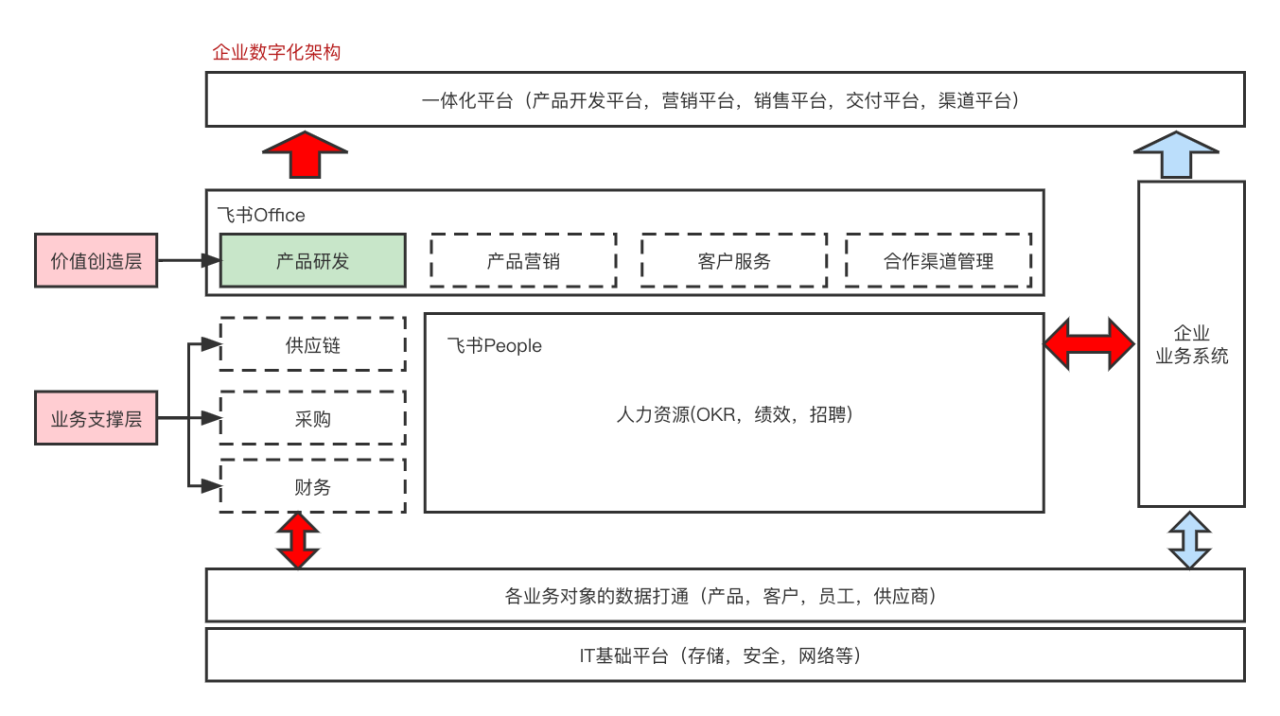 综上,飞书Office已经围绕企业内部办公场景,完成了许多基础建设工作。为了进一步和企业数字化架构融合,发挥更大的价值。可以开展两项核心举措: