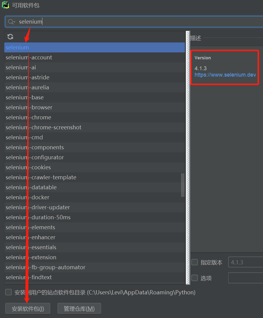 3、输入框内输入需要安装的库,选择后点击安装即可