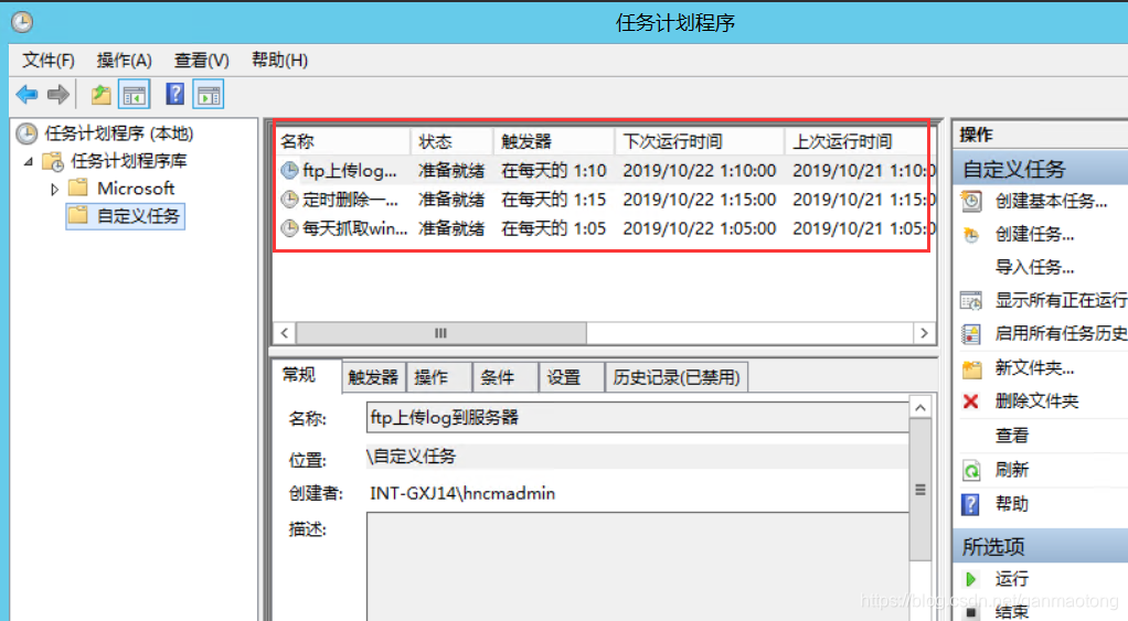 利用windows的计划任务来进行部署,实现日志的每天抓取上传清理,时间点设在凌晨一点钟之后,这样可以避开服务器的使用高峰,以免对性能造成影响。部署的时候需注意:确保系统的日期格式为yyyy/MM/dd,否则日志无法拷贝存放。