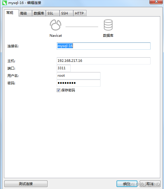 三个节点的IP是:192.168.217.16,192.168.217.17,192.168.217.23。192.168.217.16作为master。Navicat新建的连接统一以IP后缀为名,例子如下: