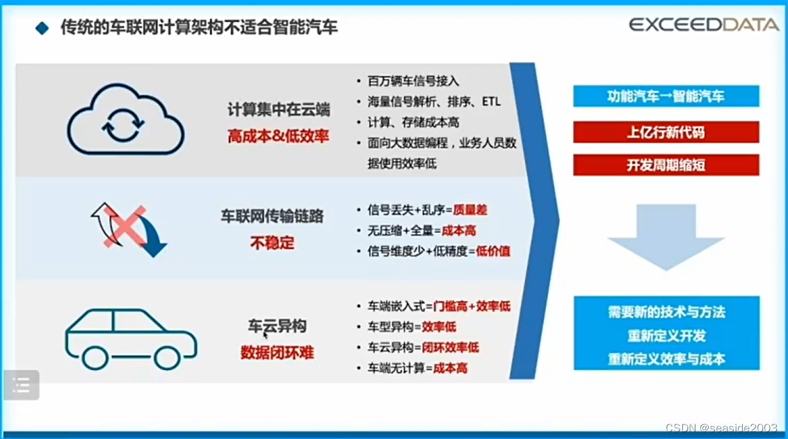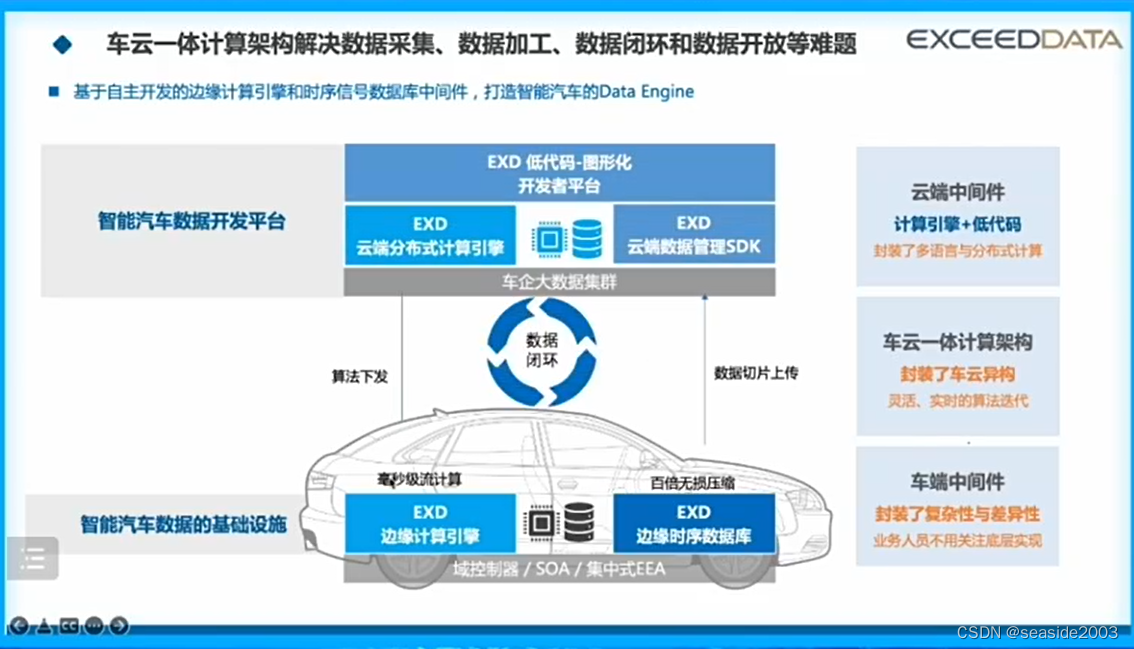 2、车云一体架构,云端计算引擎和车端计算引擎同构设计,相当于车云异构进行了封装,同时也对车端的复杂性进行了封装;