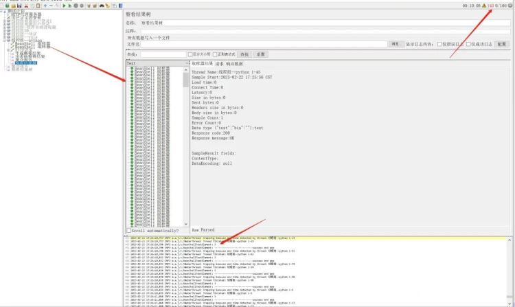 2023-02-22 17:26:08,539 INFO o.a.j.t.JMeterThread: Stopping because end time detected by thread: 线程组--python 1-33。2023-02-22 17:26:08,598 INFO o.a.j.t.JMeterThread: Stopping because end time detected