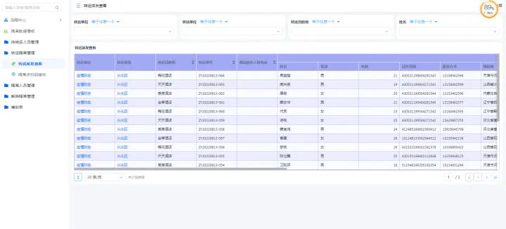 待转运人员管理支持手动录入或者批量录入所需要转运隔离人员的信息,并且支持一键发起人员的转运派发流程,从而节省时间,提高转效率。