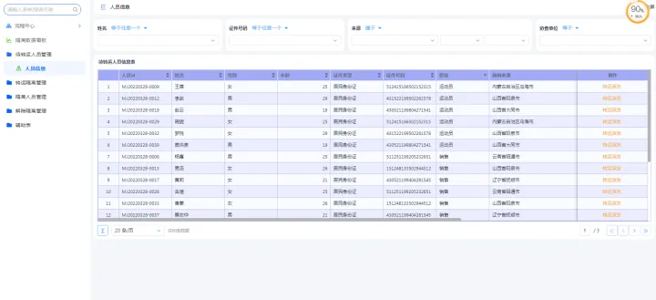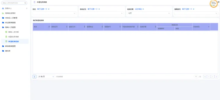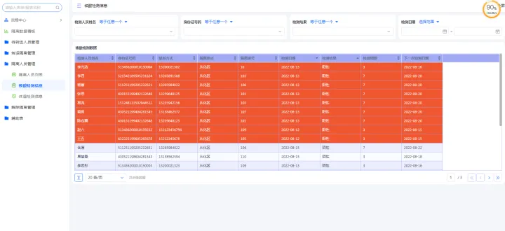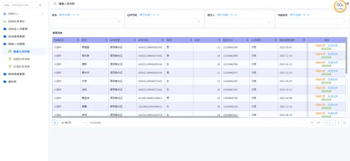 隔离人员管理则是对已隔离的人员进行管理,发起核酸检测及每日体温测量及查看各项数据,以便管理隔离人员的健康状态。