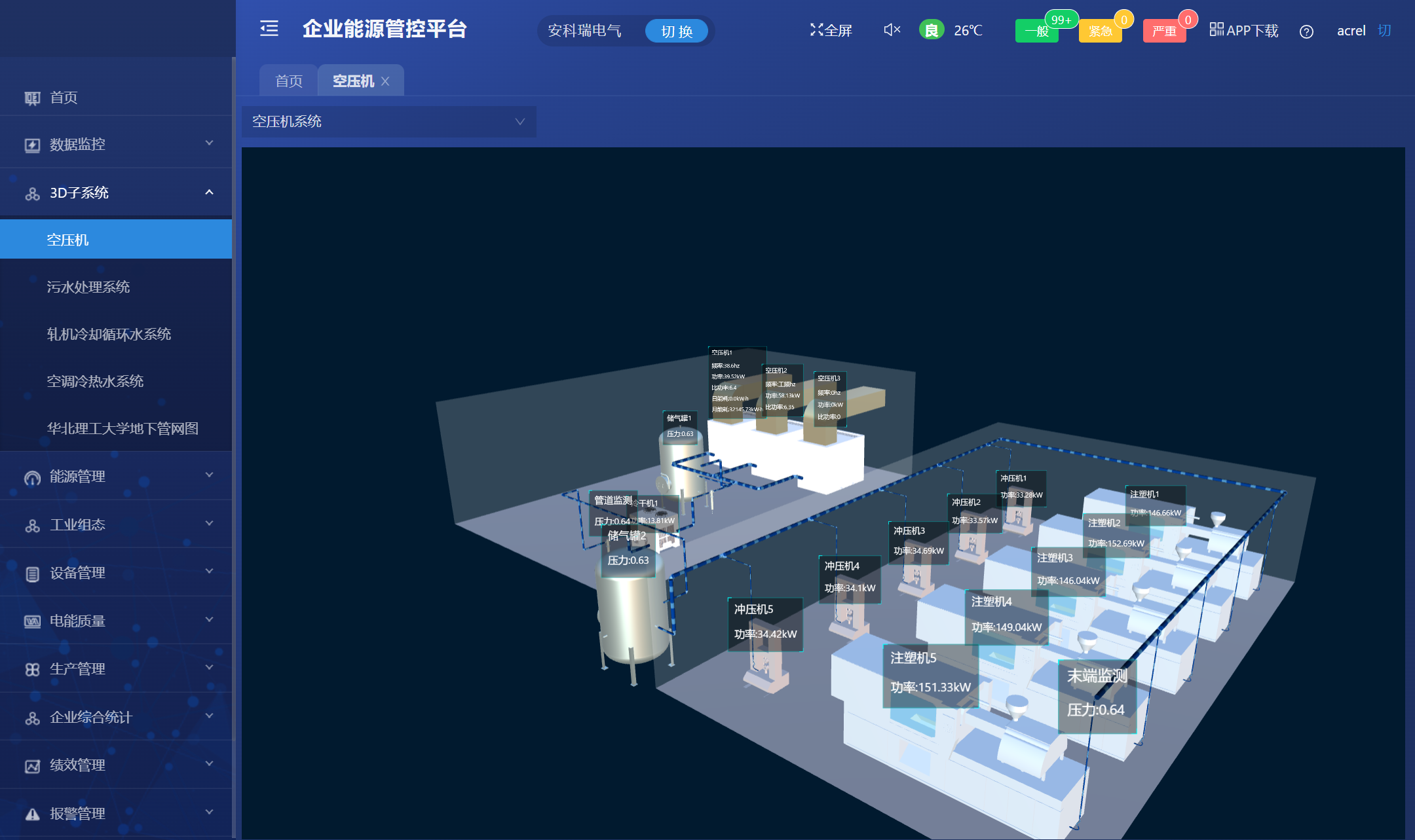 Acrel-EMS 工厂行业能效管理系统集变电站综合自动化、电力监控、电能质量分析及治理、电气安全、能耗分析、照明控制、设备运维于一体,为建立可靠、安全、高效的工厂能源管理体系提供数据支持。