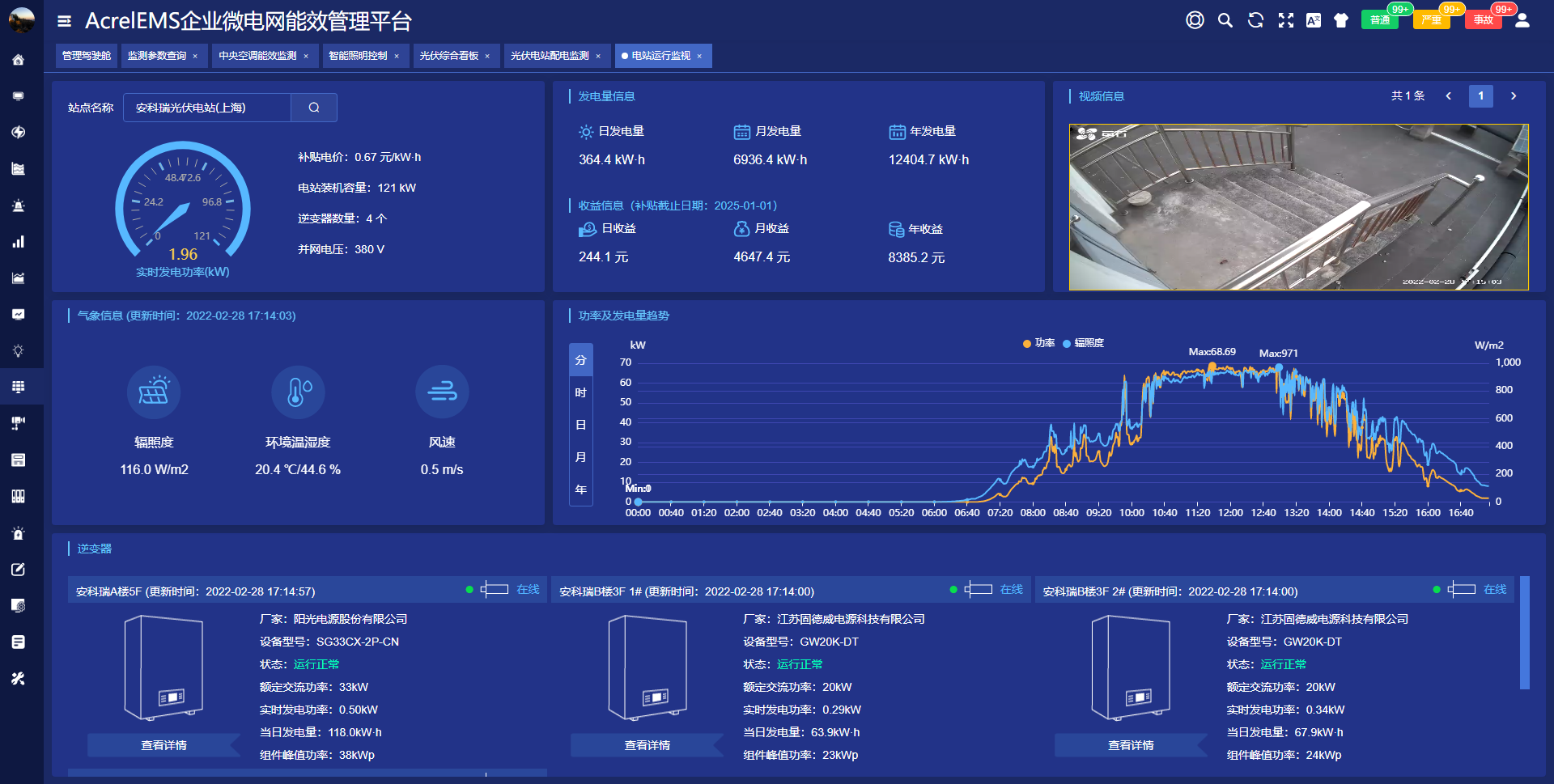 实时显示光伏电站一次接线图,光伏组串直流/交流侧实时数据