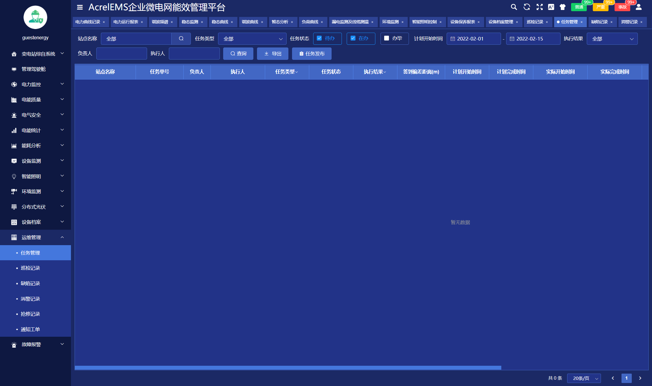 任务管理、巡检记录、缺陷记录、消警记录、抢修记录、通知工单。