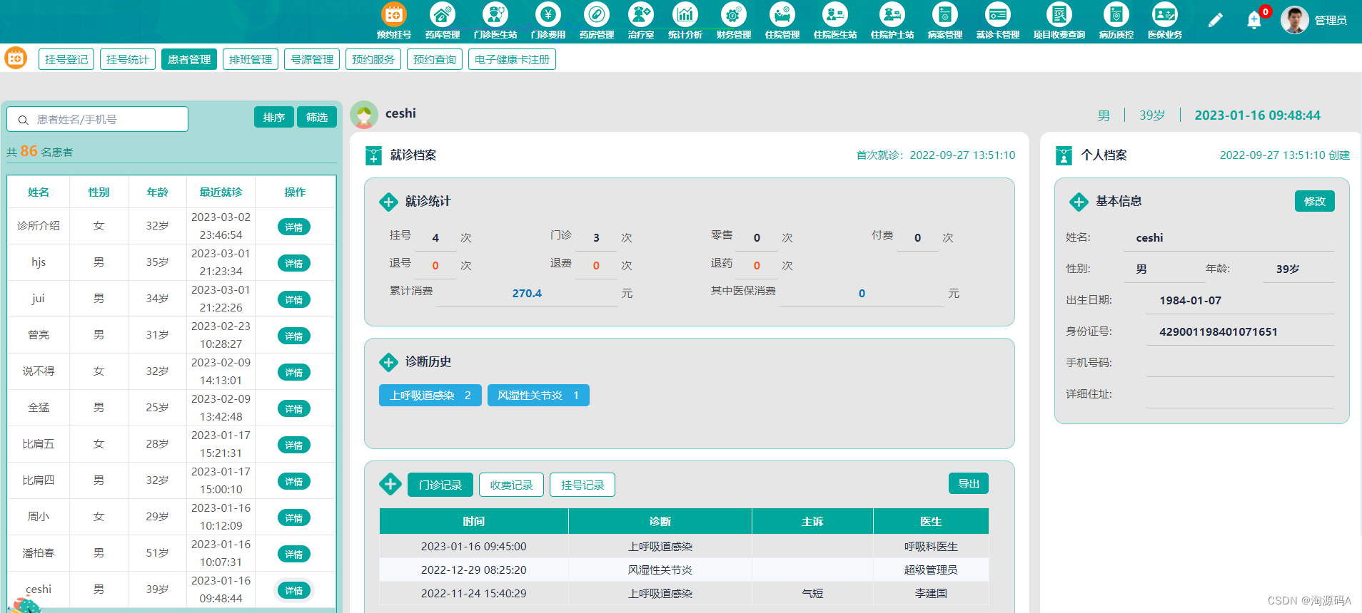 挂号及预约、划价及收费、门诊处方及病历、医生排班...