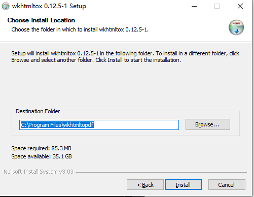 务必要记住安装地址,找到wkhtmltopdf.exe文件所在的绝对路径,后面要用到。