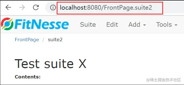 浏览器地址不能自动跳转到已创建的测试集,需要手动输入访问地址: