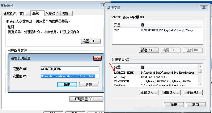 在系统变量新建:ANDROID_HOME,对应变量值为:D:\androidsdk\android-sdk-windows(sdk安装路径)