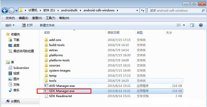 2.解压后,里面有个SDK manager.exe双击打开