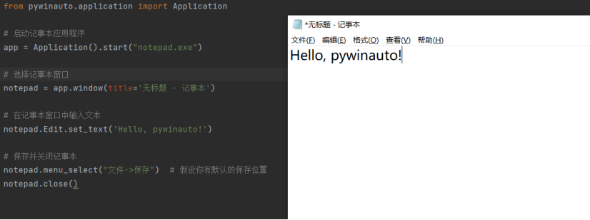 以下是一个简单的pywinauto用法示例,用于启动记事本应用程序并输入一些文本: