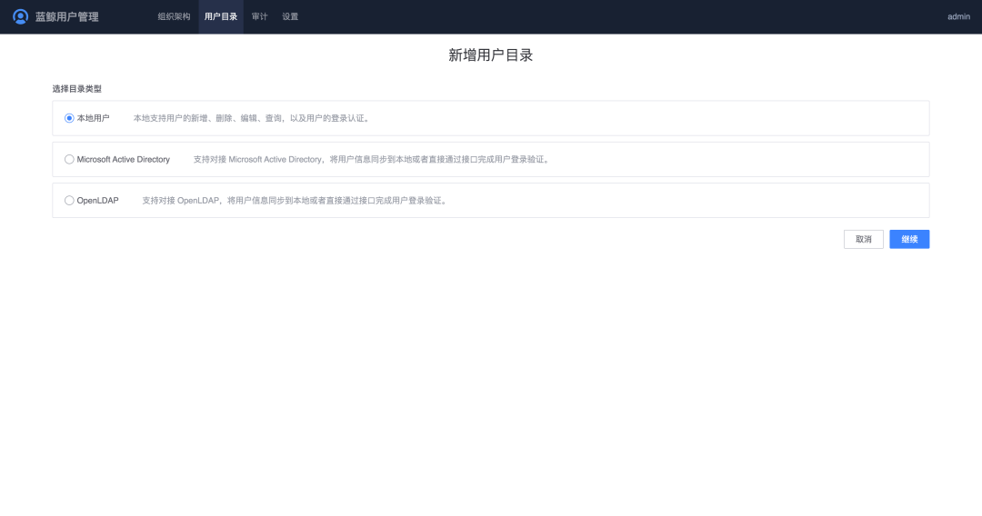 功能概述:蓝鲸提供的企业组织架构、多用户目录等集中的用户管理解决方案