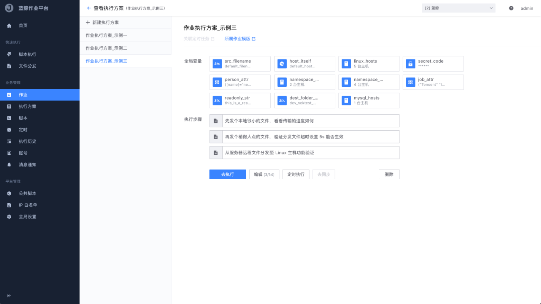 功能概述:提供批量脚本执行、文件分发、文件拉取、定时任务等基础操作的原子平台