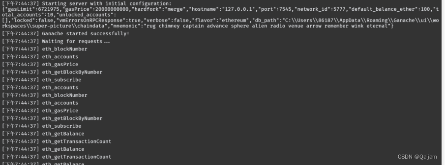 图3-9 Ganache日志消息显示服务启动成功