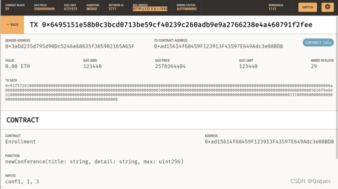 3、基于以太坊区块链技术的会议报名登记Dapp系统原型的实现:
