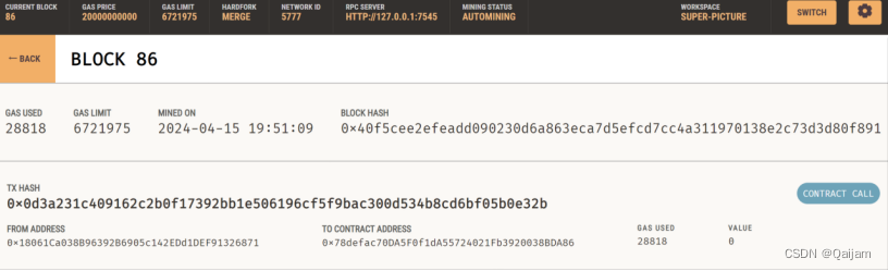 图3-8 合约部署成功后Ganache上块的生成情况