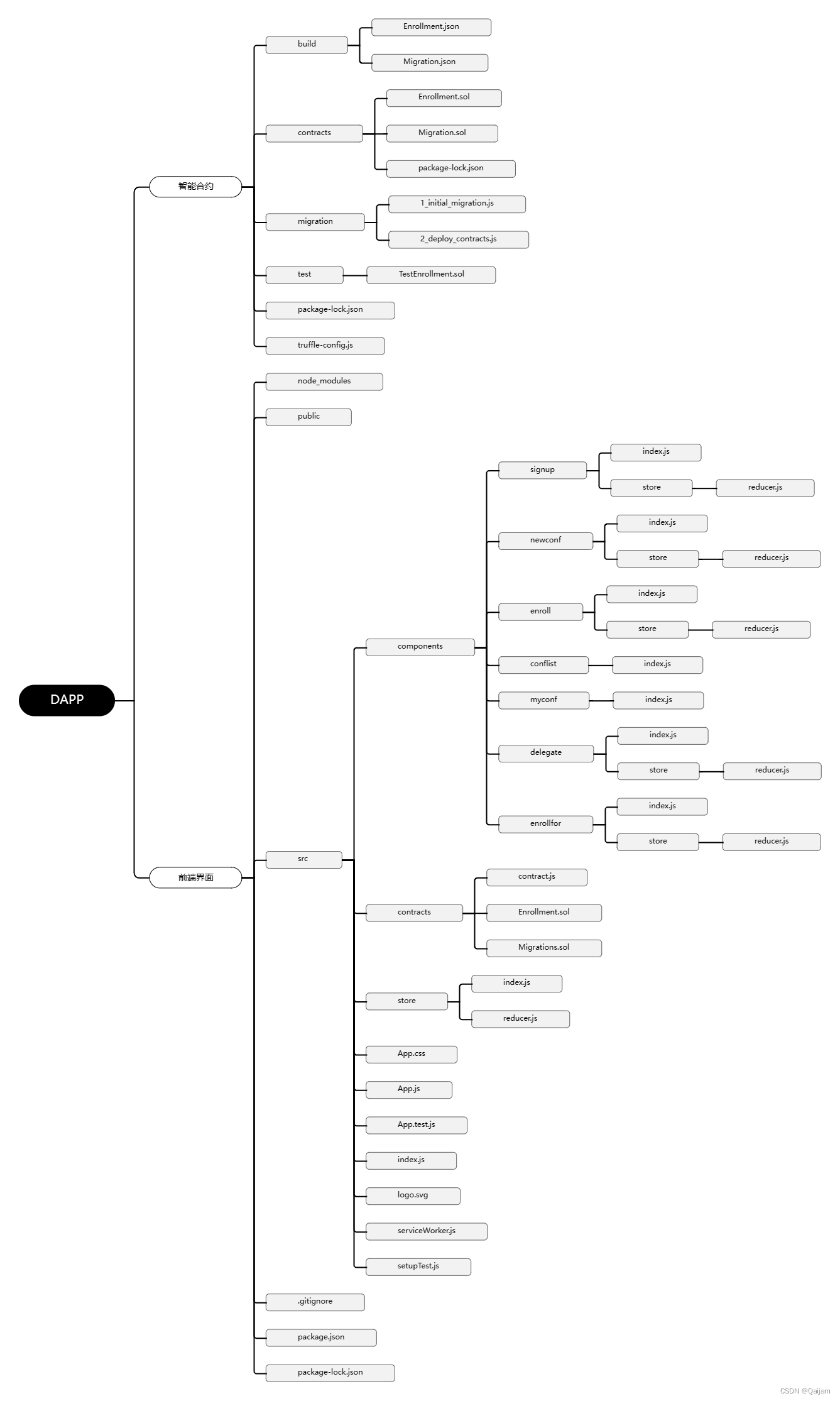 Truffle组件在这里使用到的是Truffle和Ganache这两大工具。Truffle组件是一个与以太坊节点交互的开发框架,它使开发人员能够在本地开发、测试和部署智能合约。Truffle提供了一个基于命令行的、易于使用的开发环境,允许开发者通过它编写智能合约,进行本地测试和调试,进行远程部署,以及与以太坊网络进行交互。