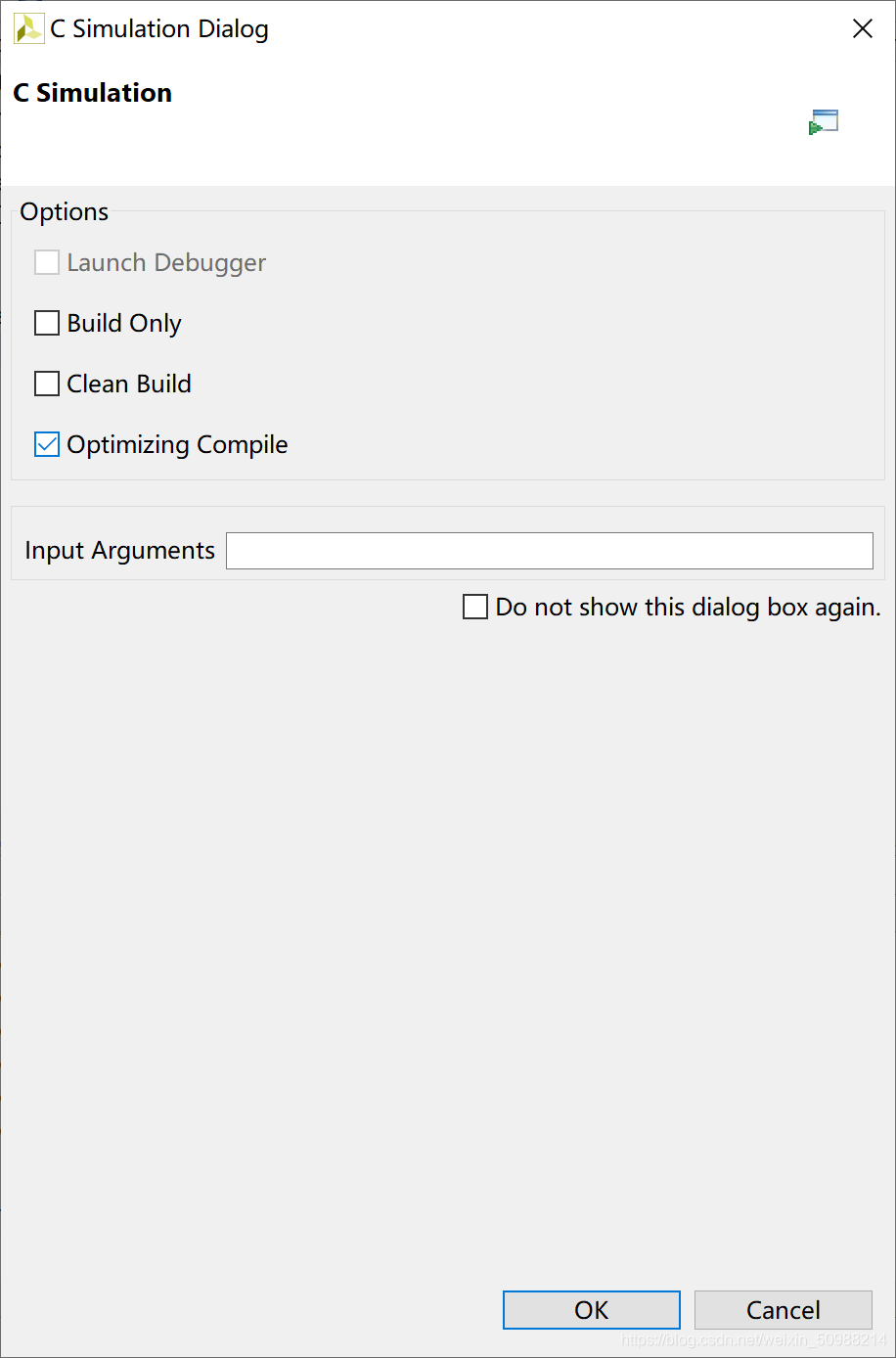 解决办法2:由于版本问题,同样在c simulation界面,勾选clean build和optimizing compile的钩子(与上面去掉相反,非笔误),再选ok。也解决问题!