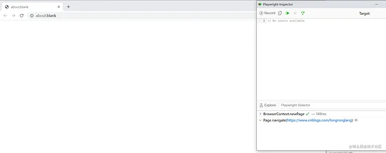 以上三种方式启动后,会自动启动 Playwright Inspector ,然后按照自己需求录制脚本,录制完后,再次点击Record,点击Copy即可生成脚本