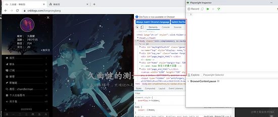 在 headed 模式下运行 Playwright 脚本,通过以下语句进入开发者模式,示例代码如下: