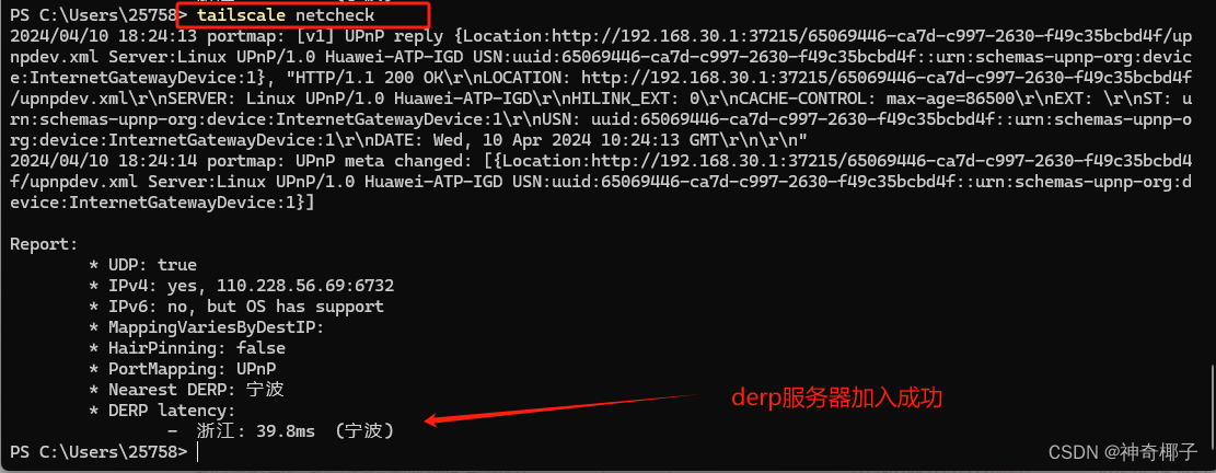保存配置文件通过 `tailscale netcheck`命令进行查看