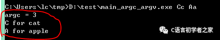 3表示命令行有3个字符串,分别是:程序名"D\test\main_arg_argv.exe"、"Cc"和"Aa"。