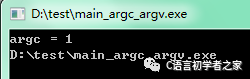 argc = 1,这个表示什么?表示的是命令行有1个字符串,这个字符串是"D\test\main_arg_argv.exe",也就是我们的程序名。