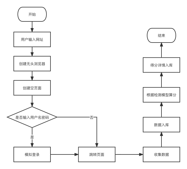 (1)用户在性能检测入口输入待检测的页面地址,点击开始检测,页面通过接口调用性能检测服务