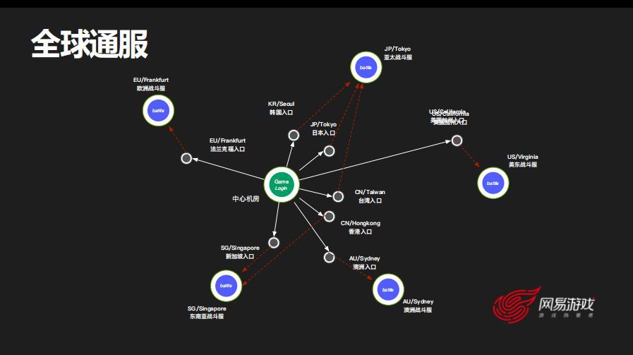 但是需要注意一点,就是是否需要去当地部署一个服有一个前提是当地的DAU作支撑,否则玩家比较少体验不佳,可能要把几个地区综合起来决策部署,比如美服一个,欧服一个,亚太服一个,这是在实践全球通服时需要注意的地方。