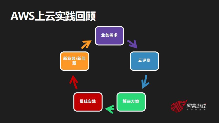关于网易游戏在AWS上的实践就介绍到这里,其实我们从14年底到现在走过了好几年海外上云的历程,在运维与基础架构层面,我们一开始是接到了业务的需求,然后针对这些需求去展开云的评测,评测完了之后可能会输出一个解决方案给到业务。