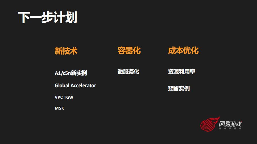 随着网易游戏海外发行数量和规模的不断增长,业务复杂度也越来越高,现在我们也遇到了一些新的挑战,接下来分享一下我们后续计划做的一些优化或者是准备引入的AWS新技术。