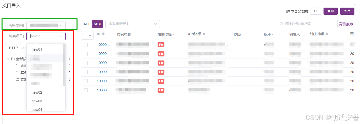 PS:在导入场景(或接口)时我们可以导入不同空间中不同项目下的不同场景(或接口)如下图