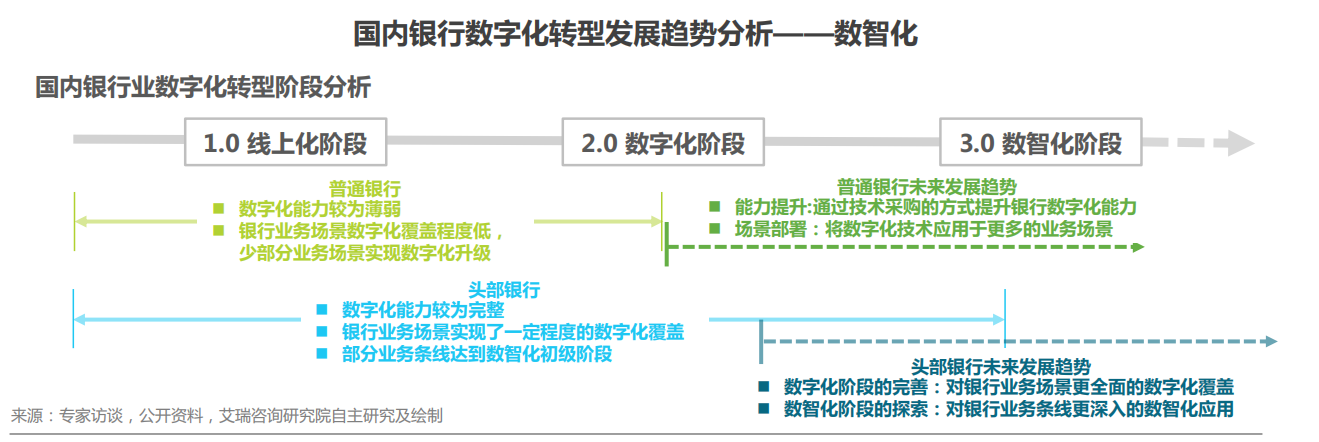 艾瑞咨询在4月发布《中国银行业数字化转型研究报告》,报告从银行数字化行业的发展背景及现状痛点入手,并对转型要素和发展趋势进行梳理,还列举了丰富的客户案例。