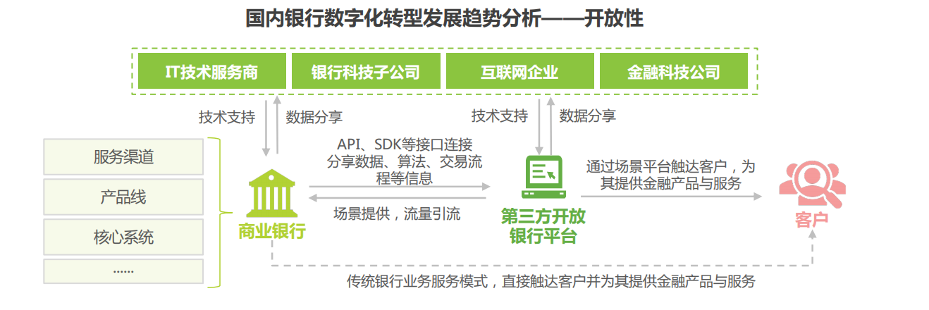 ②开放性:数字化升级推动开放融合的金融生态体系建设,促进国内开放银行业务的发展。