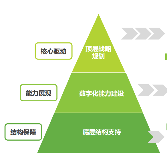 模型由顶层战略规划、数字化能力建设和底层结构支持三个部分构成