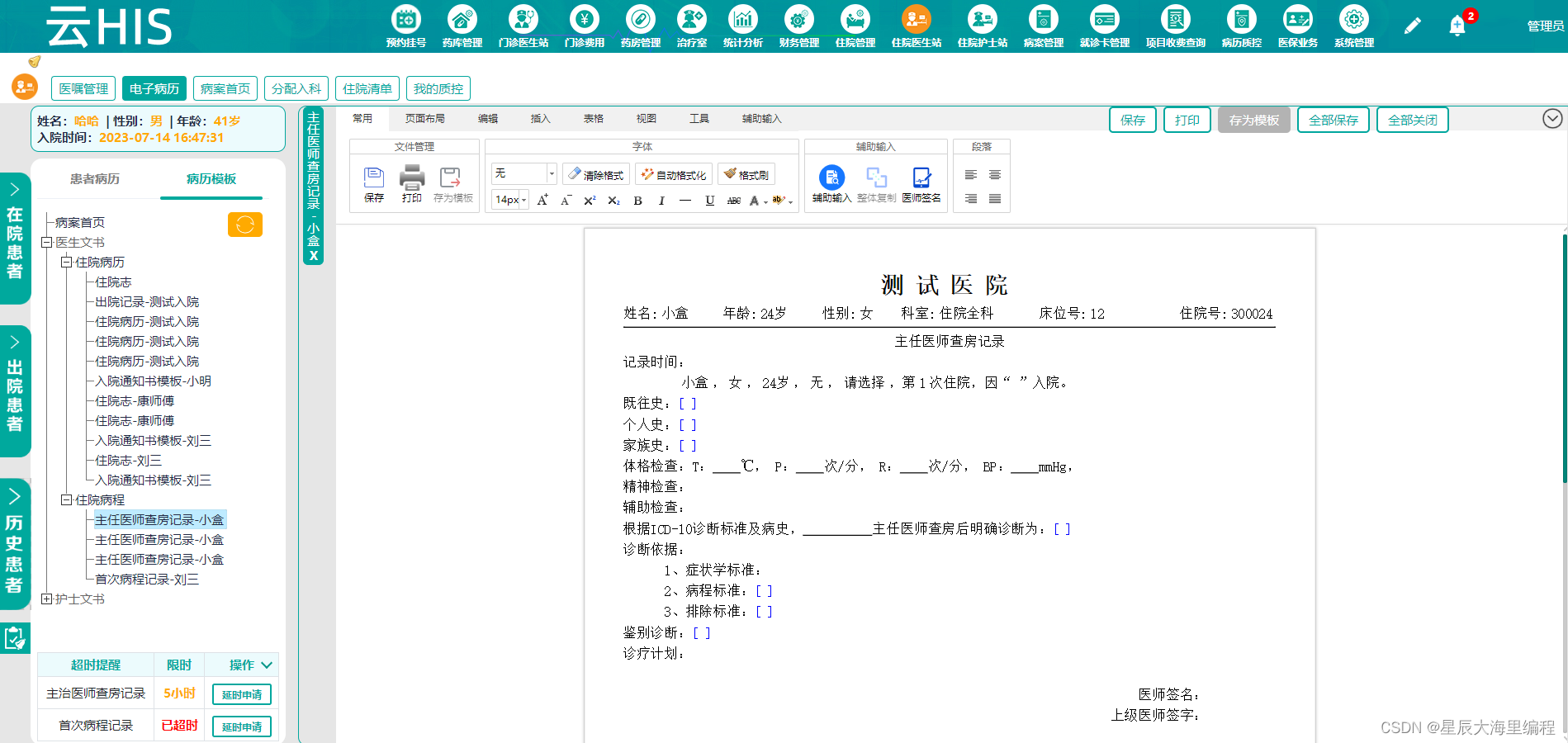 病历模板和报表模板的制作方法相同,编辑界面及操作也相同。