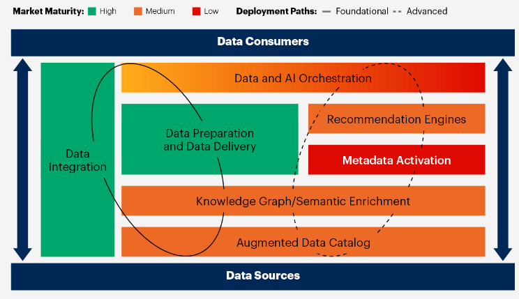 - 2020年未来—活跃元数据时代:未来将看到使用所有相关数据源对数据进行增强分析,通过高级分析、推荐引擎、数据和人工智能编排、自适应实践和元数据分析来访问和启用。
