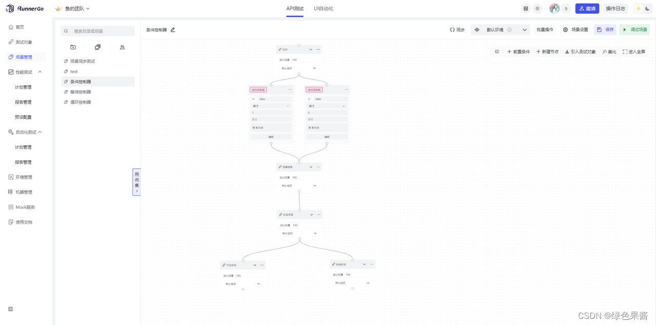 - 自动化测试中支持多用例执行、定时执行任务、多场景同时执行、添加控制器等功能