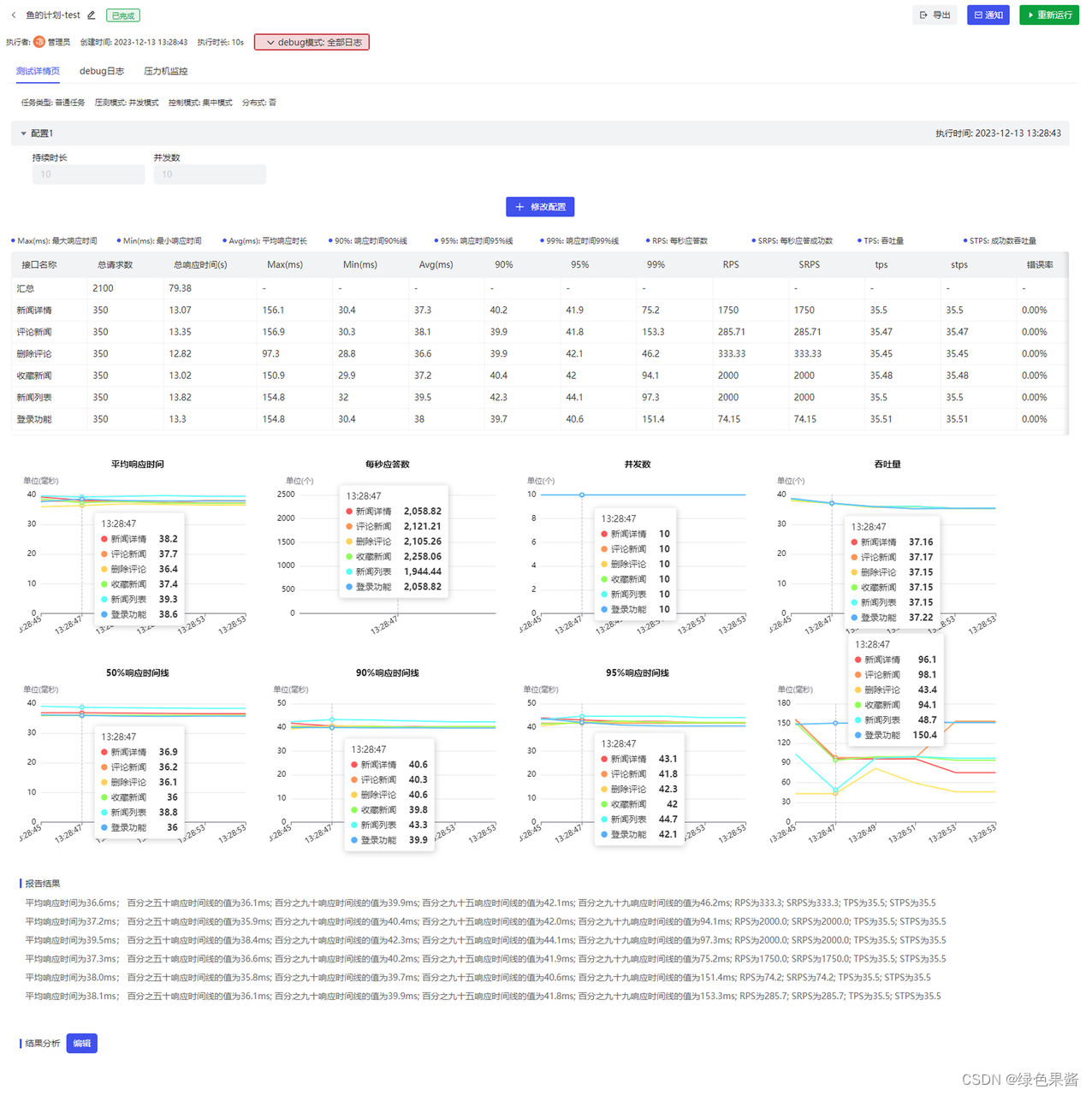 - 性能测试中无需安装各种插件,可直接对测试计划进行性能测试,并支持多种压测模式(如常见的并发模式、轮次模式、阶梯模式等六种并发模式),支持定时任务、测试报告、压力机监控等功能