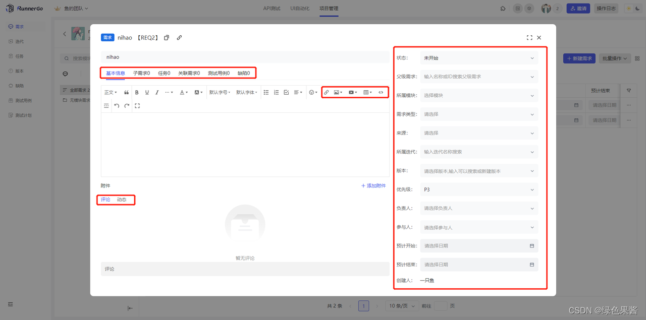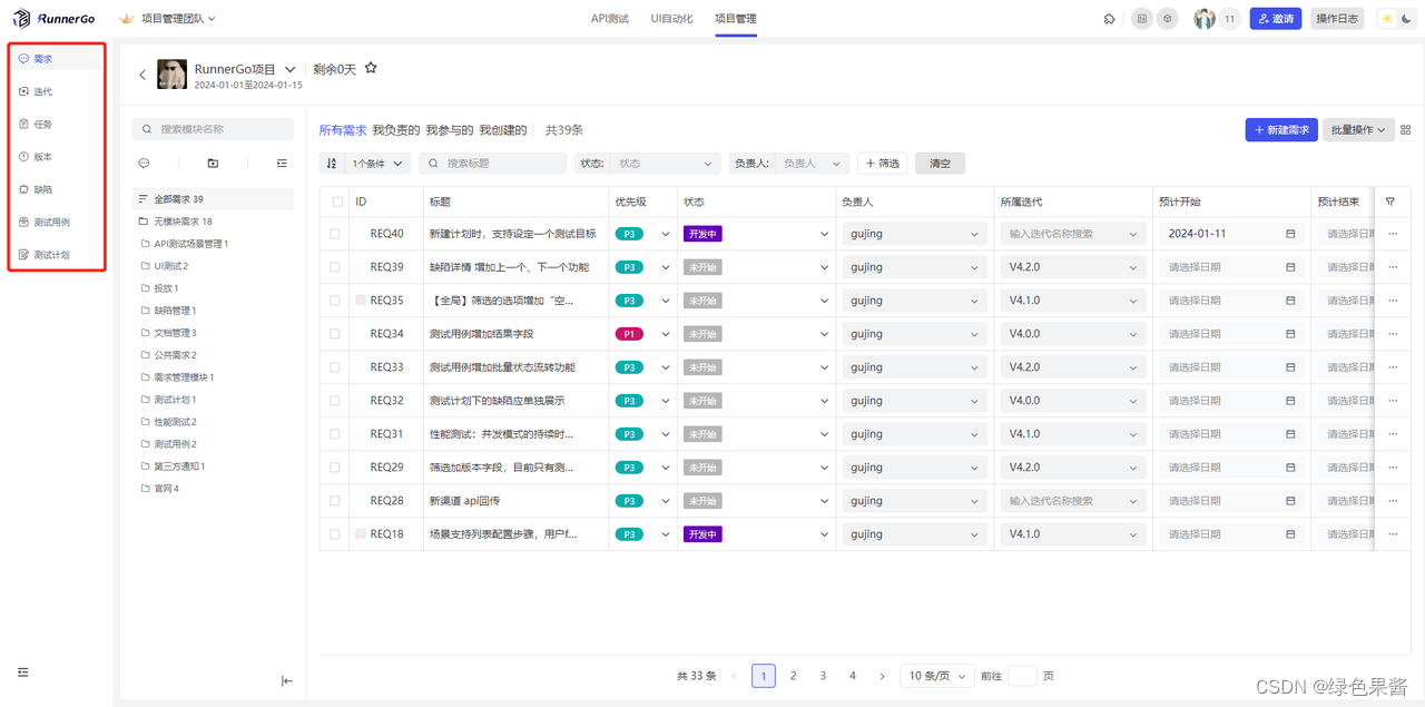 V4.0.0版本新加了 “项目管理”和“UI自动化插件”等新功能,新版RunnerGo更注重测试人员与团队的协作,测试人员可以与其他团队成员共同跟踪项目进展、处理缺陷,并进行明确的任务分配,大大促进了测试团队与开发团队、产品经理之间的紧密协作和高效沟通。