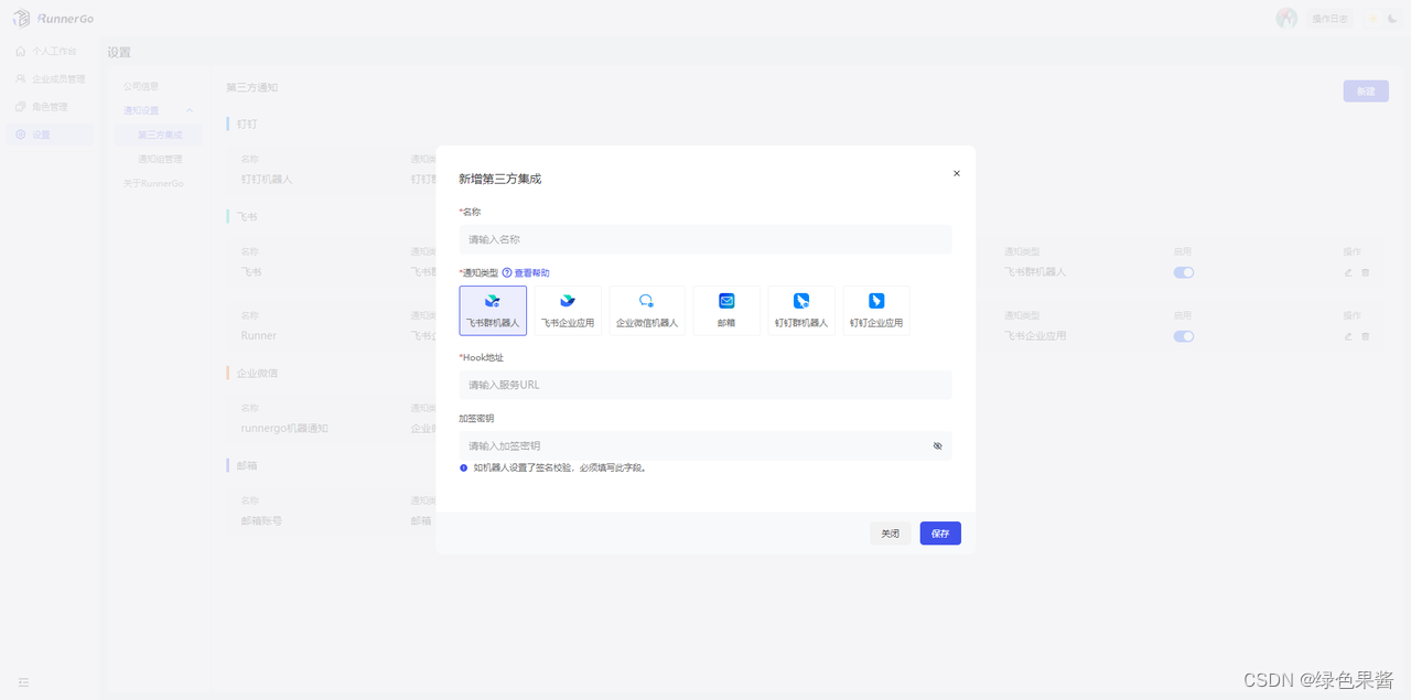 8.企业后台可以对成员权限进行管理,并可以通过第三方集成进行即时通知。