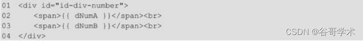 第02行和第0?行代码中,分别通过Vue.js框架的插值模板语法