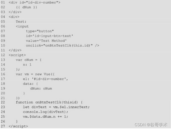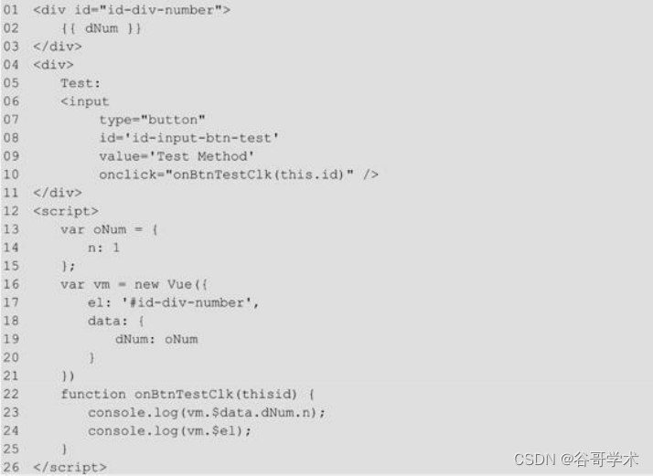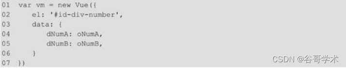 第01~06行代码中,通过“ne? Vue()”构造函数实例化Vue对象