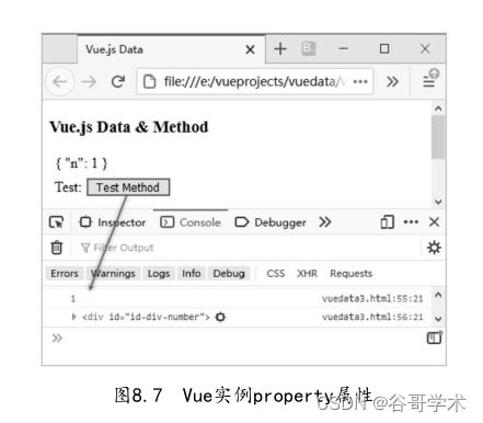 vuedata.html页面,效果如图8.8所示。在浏览器的命令行控制台中,