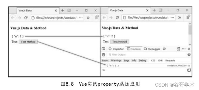 如图8.1中的箭头所示,【代码8-3】中定义的Vue对象成功渲染到
