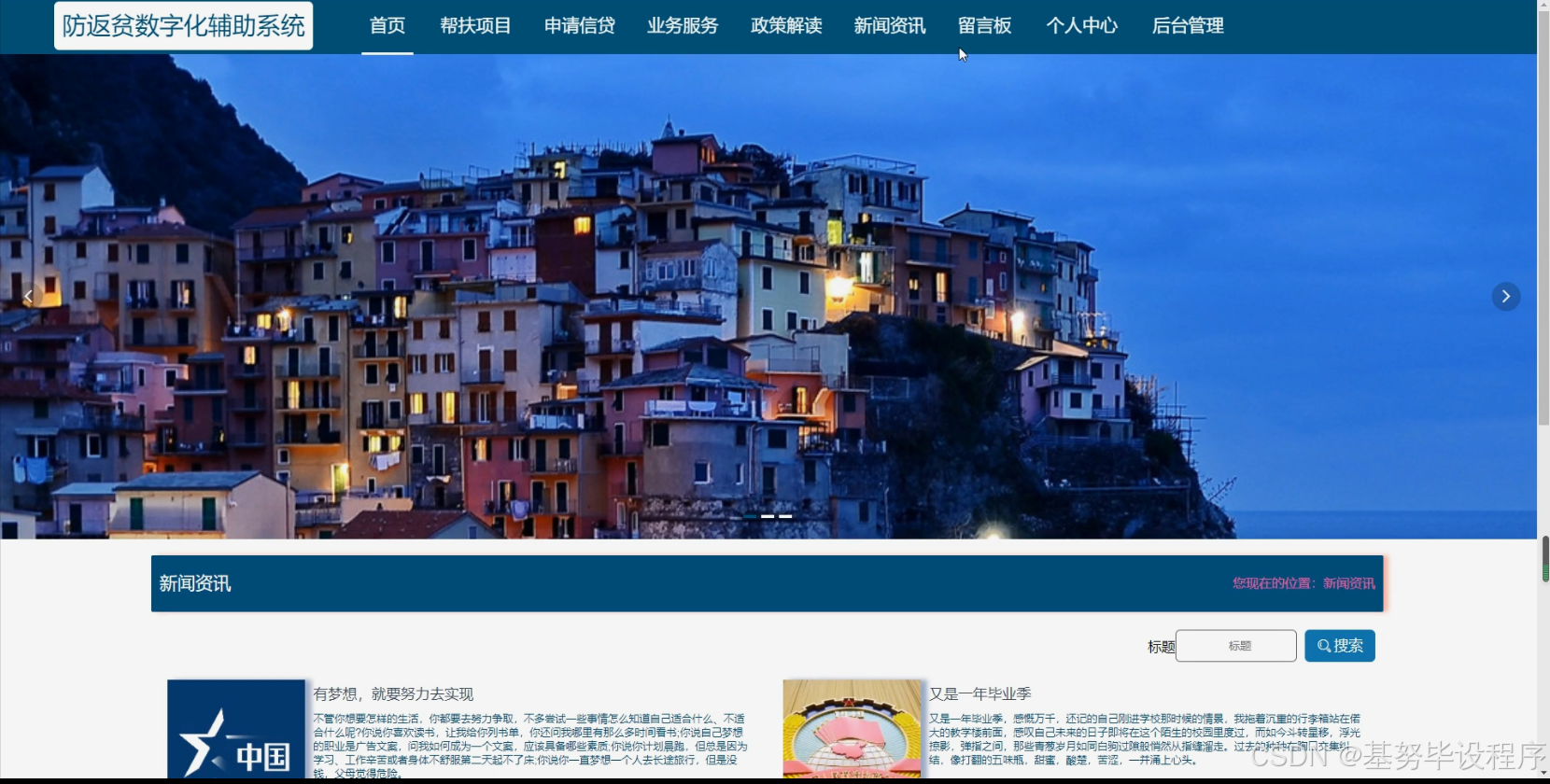 - 信息发布与沟通:系统提供政策解读、通知发布等功能,确保各主体能够及时了解防返贫相关的政策信息。同时,通过岗位安置、岗位申请等功能,为脱贫户提供就业信息,促进其就业稳定,进一步巩固脱贫成果。